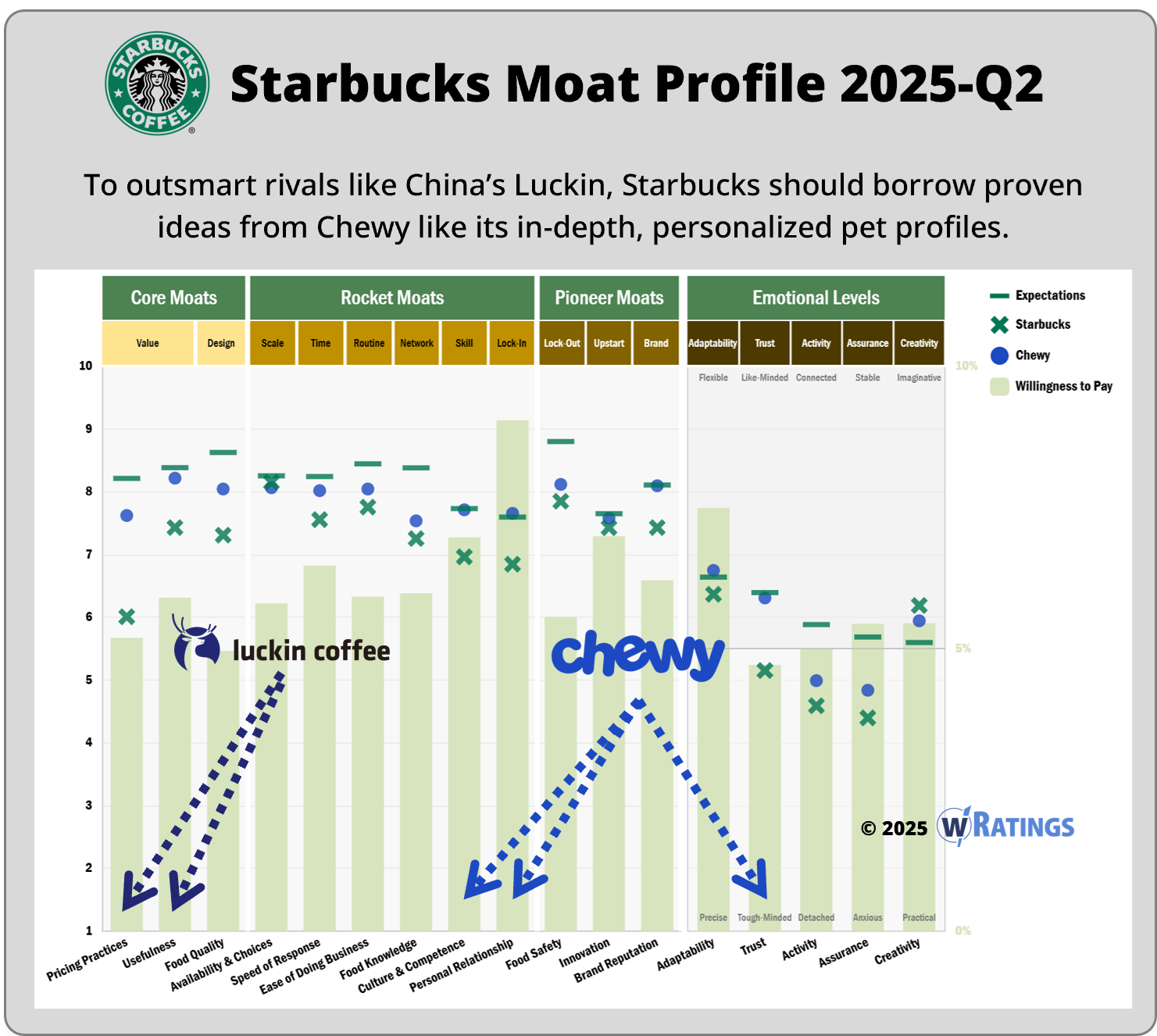 Based on recent customer data, Starbucks is still struggling in two critical areas for growth: Culture & Competence and Personal Relationship. Trust levels are also far off what customers expect.