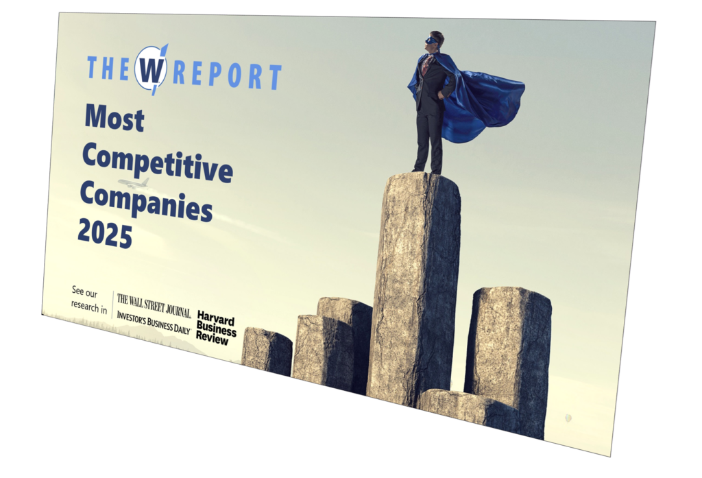 The W Report™ on the Most Competitive Companies 2025 is our quarterly ratings of The W-30 Index of companies based on how well each one performs against customers expectations, and how much more their customer’s are willingness to pay (WTP). See our research in Barron’s, Harvard Business Review, and the Wall Street Journal.