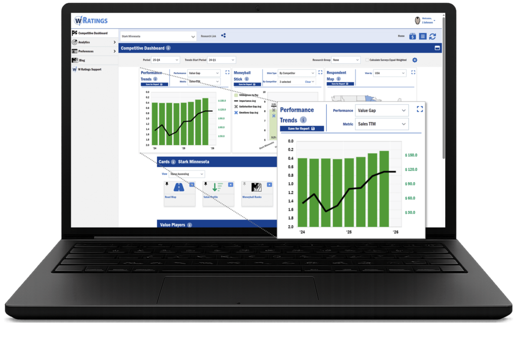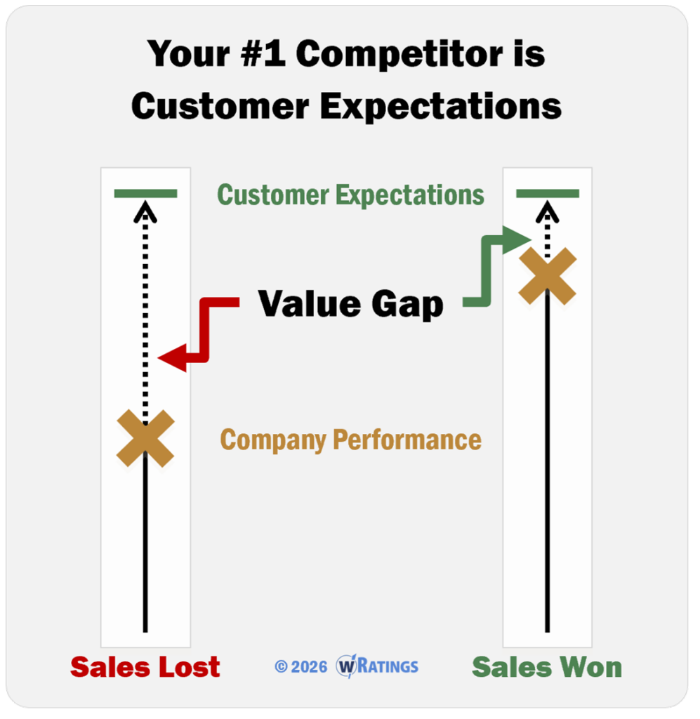 The W Ratings platform was designed to measure and close the value gap between what your customers expect and your company performance.