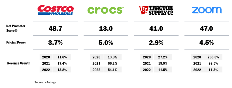 Although all four companies compete in different markets and in different ways, they have posted double-digit revenue growth throughout the pandemic, and two with more volatility. Their Net Promoter Scores also vary along with their pricing power. However, one impressive similarity does exist: They think outside the box. Or more accurately, they all created a new box.